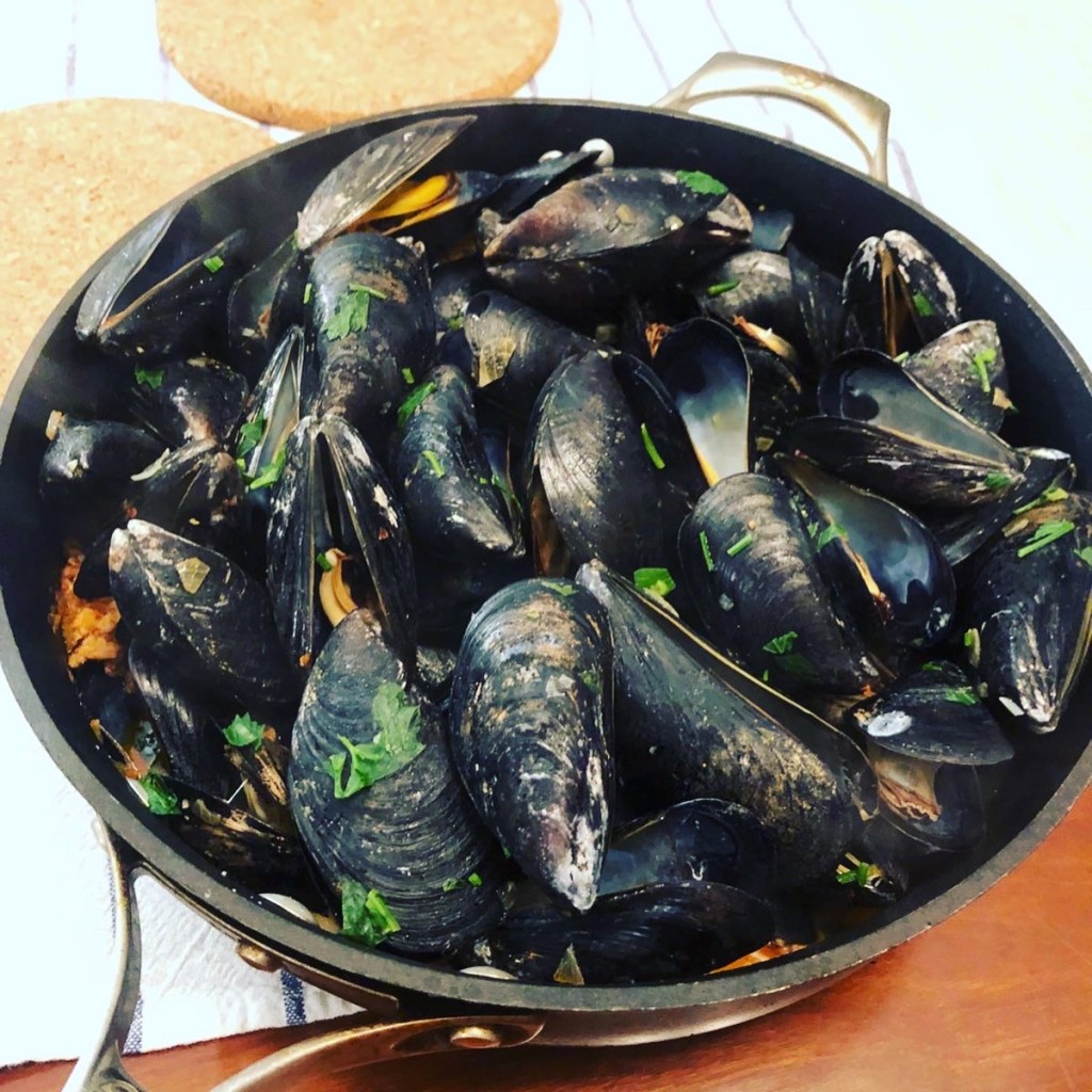 – When you’re selecting mussels, check to see how long they’ve been on the shelf, ideally caught the day before. They should smell fresh and not fishy. Fishy means they’re starting to die.