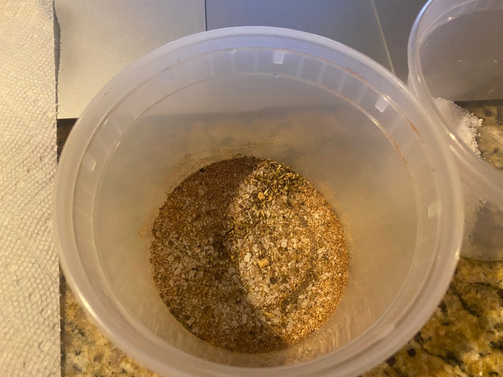 I use quotation marks because the exact measurements are not entirely accurate to a “cajun” blend, rather I am using spices and seasoning found in cajun cuisine and adjusting and adapting to my preferred flavors. I use the following ratios for my seasoning: